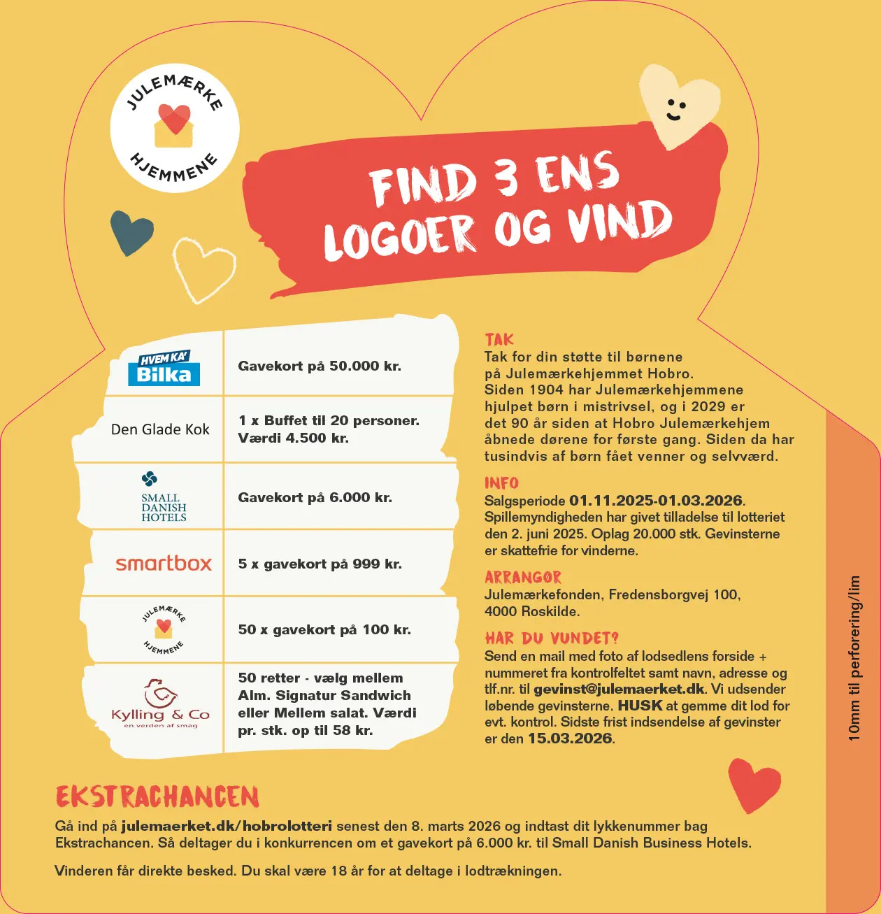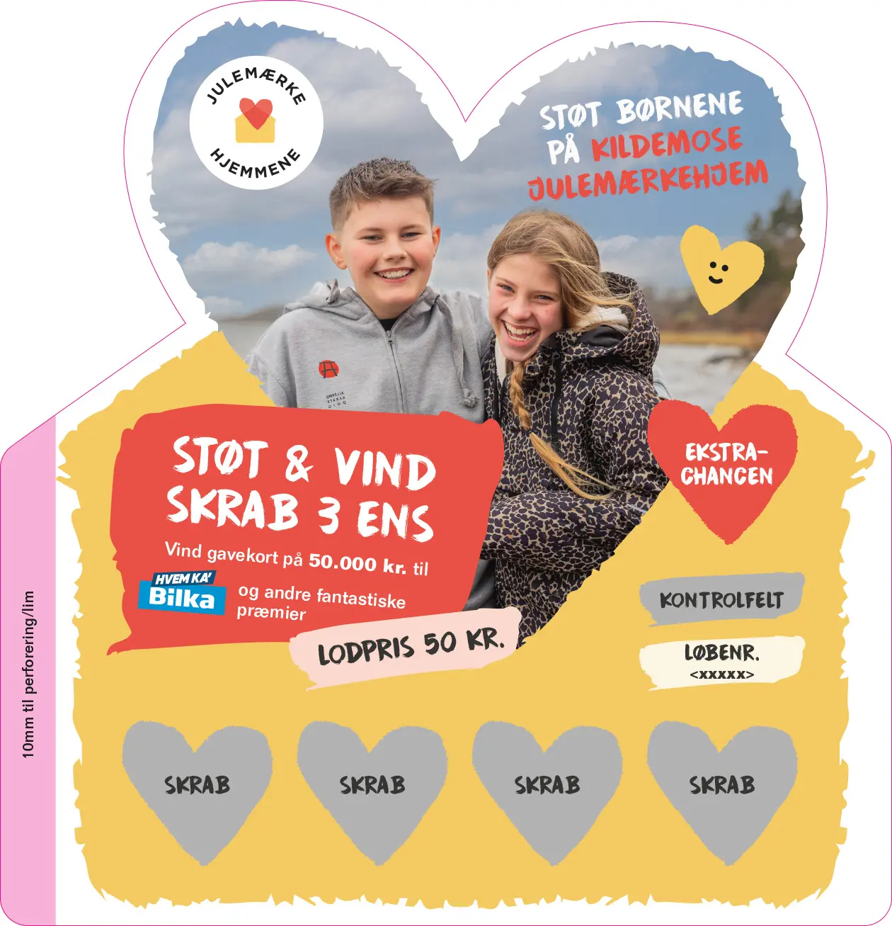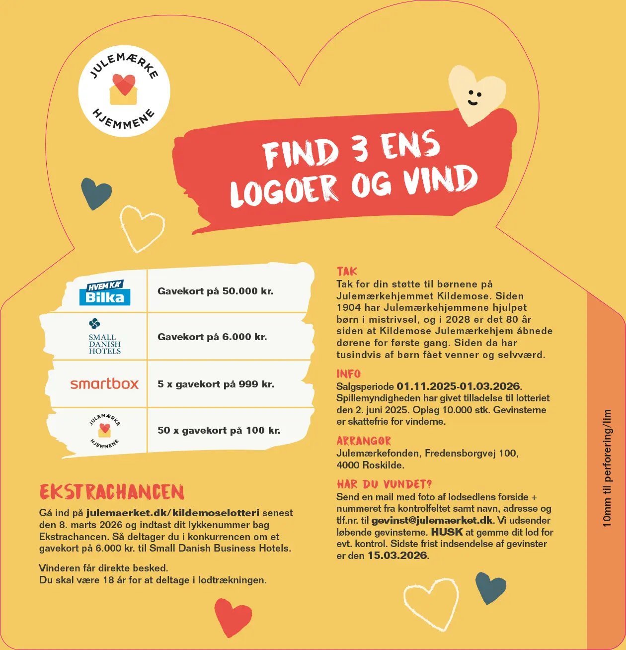 Overskuddet fra lotteriet går til Julemærkehjemmenes arbejde for det gode børneliv uden mobning, ensomhed og mistrivsel.
